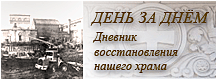 По воспоминаниям одного из первых после начала восстановления прихожан храма А.Н. Мясоедова, «в разных его местах располагались конструкции из металлических труб – строительные леса, на которых очень удобно было развешивать пальто, плащи и прочую верхнюю одежду». Служили в центральном алтаре, который лишь условно напоминал последний. На располагавшихся в нем металлических стеллажах была и библиотека и ризница. Никольский и Покровский приделы находились за фанерными перегородками. Входили прихожане не так, как сейчас, через галерею, а через боковую южную дверь, как это делали их предшественники до закрытия церкви.